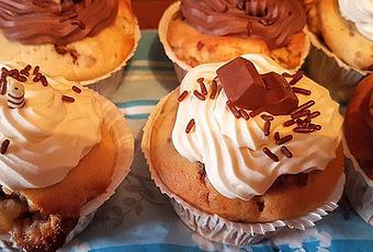 Als Finish kann man die Muffins mit weißer Schokolade verzieren.