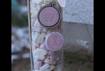 Das Stempelset "A good day" ist einfach zauberhaft. In Kombination mit den Mini-Stickrahmen entstehen wirklich tolle Akzente. Hier habe ich es zu Hilfe genommen, um ein Weckglas, das ich mit süße Herzen gefüllt hatte, zu verzieren.