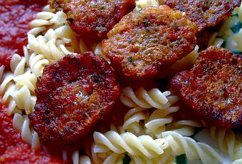Zum Anrichten Pasta auf einen Teller geben, Kufteh darauf verteilen und Sauce angießen. Perfekt mit einem grünen Salat dazu!