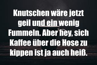 Auf Facebook teilen Vorige Folgende Knutschen wäre jetzt geil und ein wenig... Autor des Artikels : istdaslustig Zum Original-Artikel Knutschen wäre jetzt geil und ein wenig Fummeln. Aber hey, sich Kaffee über die Hose zu kippen ist ja auch heiß. Hier geht es zum Artikel Mehr Lustiges auf www.istdaslustig.de Auf Facebook teilen Vorige Folgende Das könnte Ihnen gefallen Mehr