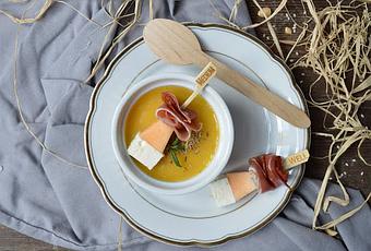 In dem heutigen Rezept gibt es nicht nur Kohlrabi und Melone in einer Kombination, sondern auch verschiedene Gewürze. Mit einer kleinen Beilage aus Rohschinken schmeckt die Suppe nicht nur fruchtig, sondern auch schön pikant.