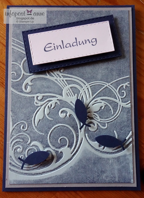 Der Prägefolder wurde mit dem Stempelkissen in marineblau