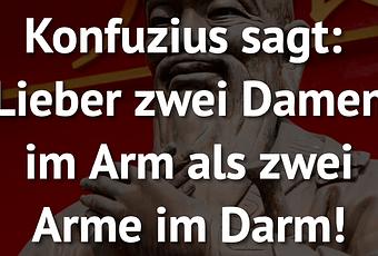 Auf Facebook teilen Vorige Folgende Konfuzius sagt: Lieber zwei Damen im Arm als... Autor des Artikels : istdaslustig Zum Original-Artikel Konfuzius sagt: Lieber zwei Damen im Arm als zwei Arme im Darm! Hier geht es zum Artikel Mehr Lustiges auf www.istdaslustig.de Auf Facebook teilen Vorige Folgende Das könnte Ihnen gefallen Mehr