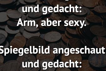 Auf Facebook teilen Vorige Folgende Kontostand angeschaut und gedacht: Arm, aber... Autor des Artikels : istdaslustig Zum Original-Artikel Kontostand angeschaut und gedacht: Arm, aber sexy. Spiegelbild angeschaut und gedacht: Mist, nur arm. Hier geht es zum Artikel Mehr Lustiges auf www.istdaslustig.de Auf Facebook teilen Vorige Folgende Das könnte Ihnen gefallen Mehr