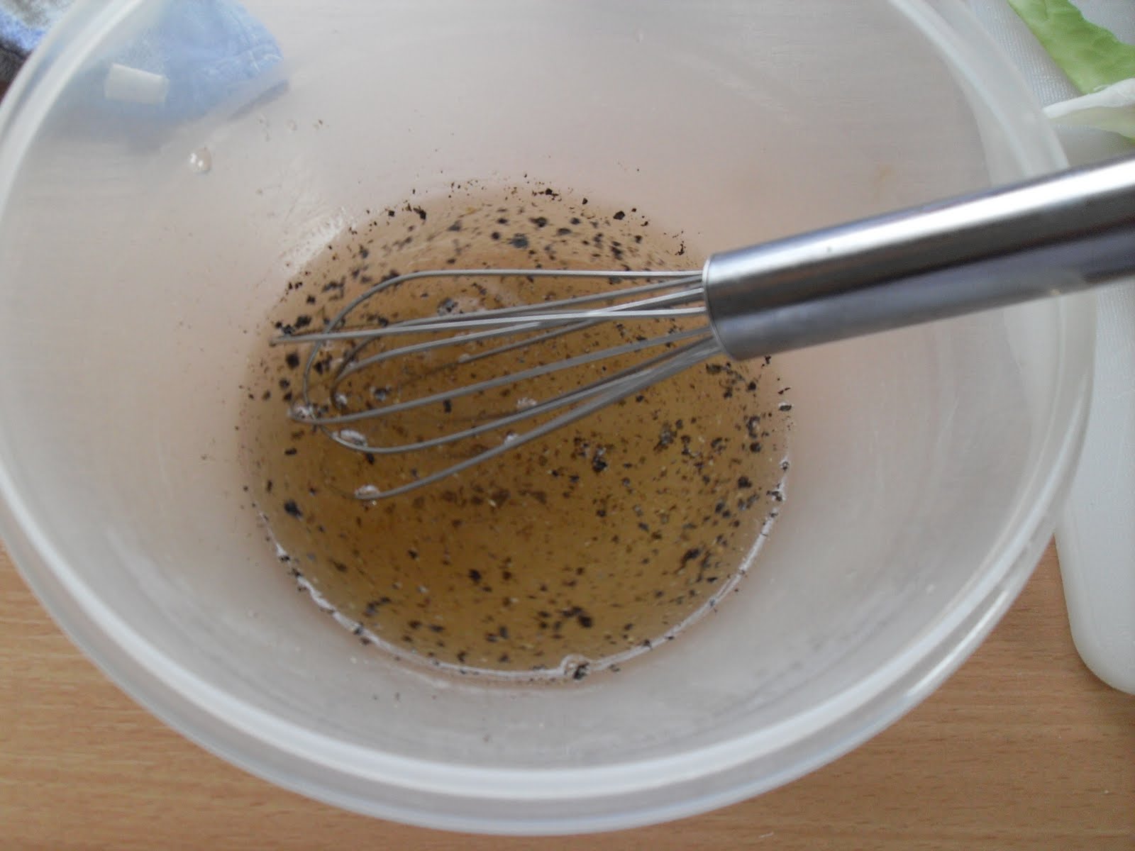 Für die Marinade die restlichen Zutaten in einer anderen Schüssel gut verrühren (Öl erst zum Schluss) bis der Zucker komplett aufgelöst ist.