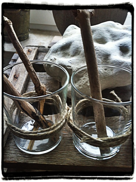 Zum Beispiel etwas Kordel an die Wand heften und mit ein paar Wäscheklammern nette Karten und Fotos befestigen. Oder um Gläser wickeln. Vogelsand ins Glas rein und TaDa! Ein sympathisches Teelicht Glas!
