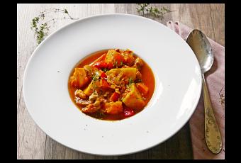 - Wer nicht auf Fleisch verzichten möchte, schmort am Anfang etwa 500 g Rindergulasch, Lamm oder Geflügelfilet mit.