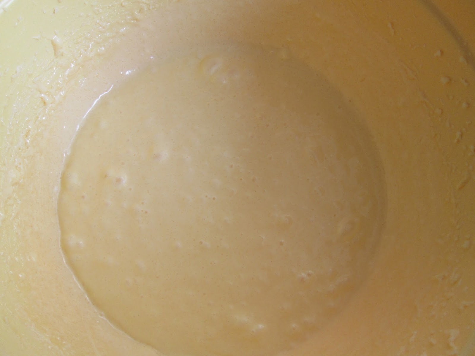 Das Mehl mit dem Backpulver vermischen und löffelweise unter den Teig arbeiten.