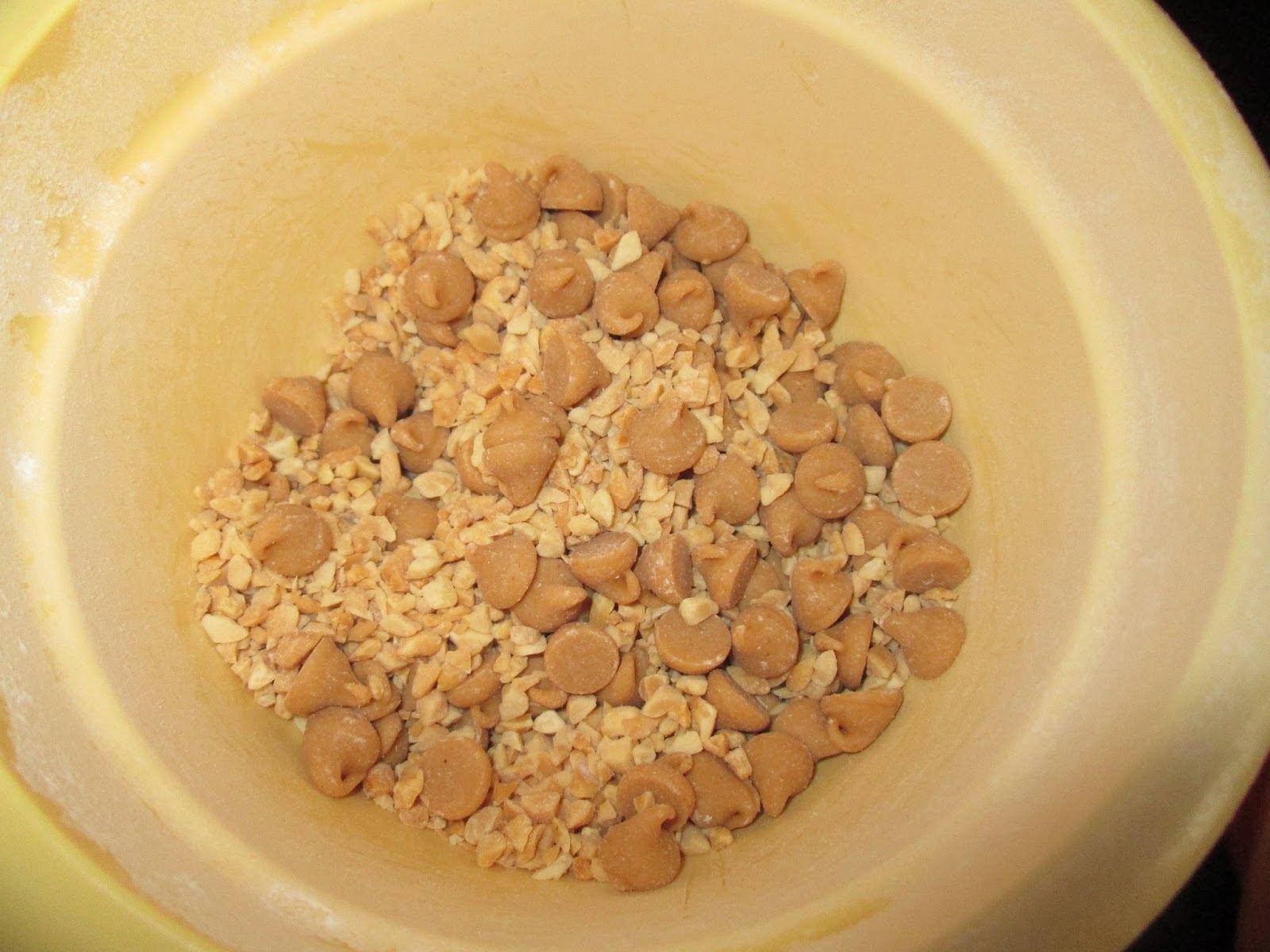 50 g Peanut Butter Chips (habe ich aus den USA von Reese's, wenn man keine bekommt, dann nimmt man einfach mehr Erdnüsse)