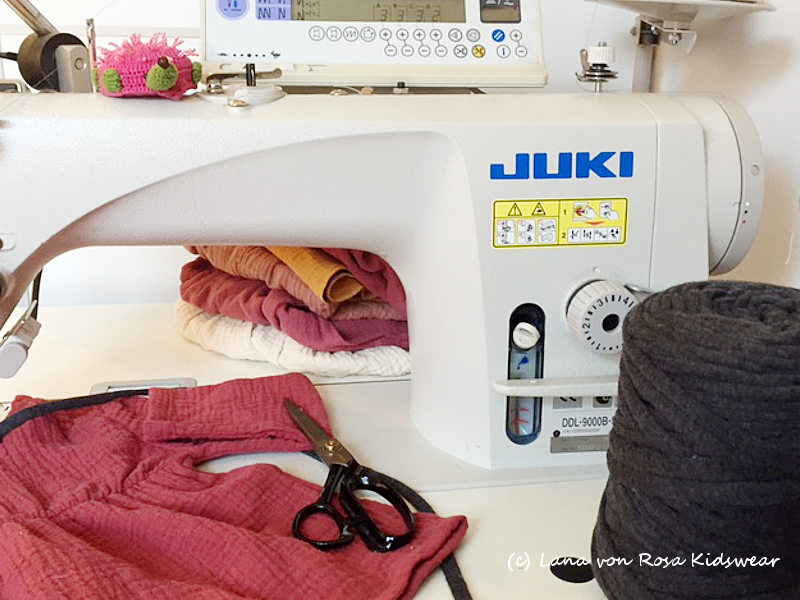 Nach einer etwas längeren Abitortur habe ich eine Ausbildung zur Modeschneiderin gemacht. Leider bin ich beruflich etwas auf Abwegen geraten und habe 16 Jahre in einer Nürnberger Gastronomie gearbeitet. Die letzten Jahre davon in leitender Position. Irgendwie kam es dann zu einer beruflichen Umorientierung und nun sitze ich in einem schönen Büro mit netten Mädels und ganz viel PC arbeit. Irgendwie hat mir etwas gefehlt und ich hab mich dazu entschieden wieder mehr mit den Händen zu machen und auch noch etwas für meine kirchliche Hochzeit anzusparen aus diesem Gedanken heraus hab ich ein Gewerbe angemeldet und eine kleine Schneiderei mit Aufträgen in Heimarbeit aufgemacht. Das Schnorcheltier.Katharina: Seit wann nähst Du?Franziska: Eigentlich schon seitdem ich denken kann. Die Leidenschaft hab ich wohl von meiner Mutter geerbt, aber so richtig aktiv seit 2014 vorher nur zu speziellen Anlässen wie meiner Ausbildung oder für mich privat.Katharina: Wie kam es zur Gründung von Deinem Label und seit wann gibt es Lana von Rosa Kidswear?Franziska: Darüber nachgedacht habe ich schon seit Jahren aber nie wirklich umgesetzt. Weil es ja schon wirklich viele Hürden gibt…Homepage, Werbung, Vorraussetzungen usw.Immer nur die Ideen und Weisheiten anderer umzusetzen, ja da hat mir einfach aber immer noch was gefehlt. Und ständig die Suche nach passenden Auftraggebern macht auch nicht immer Spaß und da hab ich im Mai 2016 einfach meinen Mut zusammen genommen, hab mich auf Instagram angemeldet und nebenbei a bissl was von mir genähtes gezeigt.Katharina: Deine Werke haben einen absoluten Wiedererkennungswert in meinen Augen, das liegt an dem Stoff, den Farben und den Schnitten. Was inspiriert Dich für Deine Werke und warumverwendest Du diesen Stoff?Franziska: Musselin kannte ich durch meine Ausbildung und da es ja der neueste Trend-Stoff ist und Jersey ja mittlerweile irgendwie jeder hat, dachte ich mir: "Klaro warum nicht ich auch".Die Außenwelt inspiriert mich mega…und vor allem die Kinder und Muttis die ich auf Instagram kennen, schätzen und lieben gelernt habe.