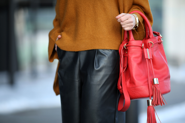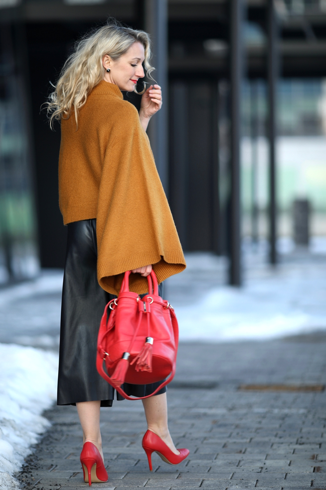 Vermutlich hat jede Frau Lieblingsfarben. Farben, die sie mag, mit denen sie sich gerne umgibt, in denen sie sich wohl fühlt und die sich auf ihre Stimmung auswirken. Bei mir sind das viele Farben, muss ich zugeben. Einerseits habe ich bevorzugten Farben für mein Zuhause, andererseits natürlich für meine Garderobe. Unabhängig von der Jahreszeit, Anlässen und sonstigen Dingen, gehören die Farben Rot, Schwarz und Camel/Beige zu meinen "All time favorites". Ich liebe diese Farben, weil sie klassisch, schlicht & elegant, gleichzeitig aber auch sehr powervoll & extravagant sein können. Vor allem dann, wenn man auf einen Mix aus Materialien und besondere Schnitte setzt. Und daher zeige ich Euch als ersten Look meiner dieswöchigen "black collection" meine geliebte Lederculottes, die ich mit einem lässigen Fledermaus-Sweater und meiner neuen Powertasche kombiniere <3 ... - Wie gefällt Euch mein OOTD? Und was sind Eure Lieblingsfarben?
