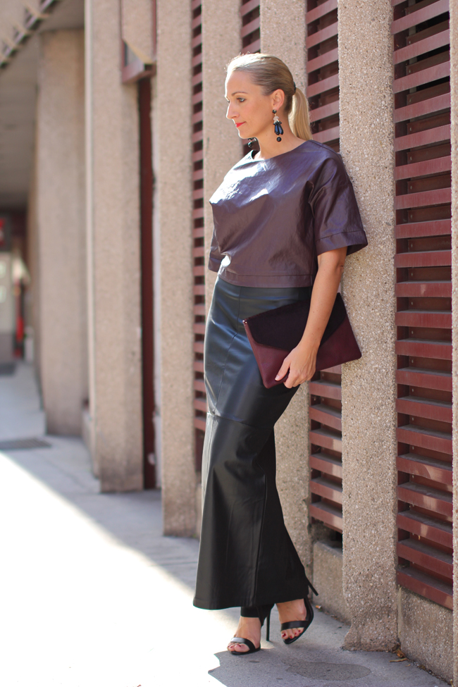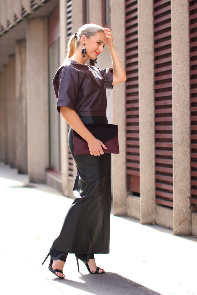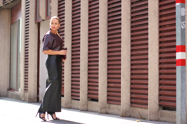 leather maxi skirt - Zara / blouson top - Forever 21 / high heels - Topshop / clutch - C&A / earrings - H&Mlocation - Mariahilfer Gürtelshop my look
