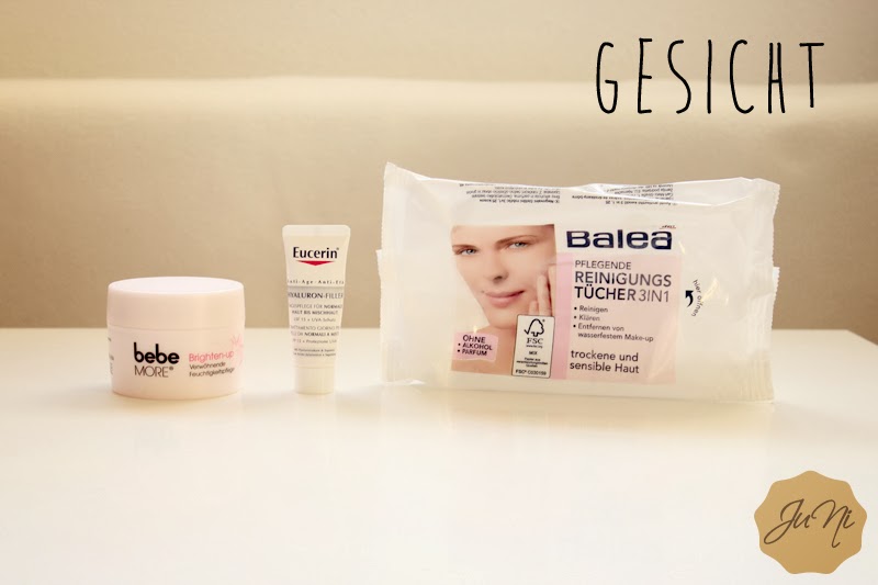 bebe more "Brighten up": super im Sommer, im Winter pflegt sie mir zu wenig. Wird neu angeschafft (fürs Frühjahr).Eucerin "Hyaluron Filler": konnte kaum eine Wirkung feststellen, neutraler Duft. Wird nicht neu angeschafft.Balea "Pflegende Reinigungstücher": mein Alltime-Favorit. Wird neu angeschafft.