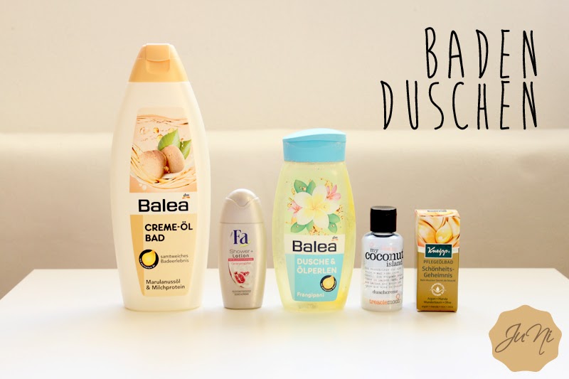 Balea "Creme-Öl-Bad": riecht lecker und erzeugt einen tollen Schaum, Pflegewirkung kaum wahrgenommen. Wird neu angeschafft.Fa "Shower + Lotion" Granatapfel: toller Duft, aber keine Pflegewirkung. Wird nicht neu angeschafft.Balea "Dusche & Ölperlen": mochte ich gar nicht, seltsamer Duft, lässt sich schwer auf der Haut verteilen. Wird nicht neu angeschafft.Treaclemoon "my coconut Island": Ich liebe den Duft - wird definitiv neu angeschafft Kneipp Pflegebad "Schönheitsgeheimnis": macht die Haut streichelzart, riecht gut, schäumt kaum. Wird neu angeschafft.