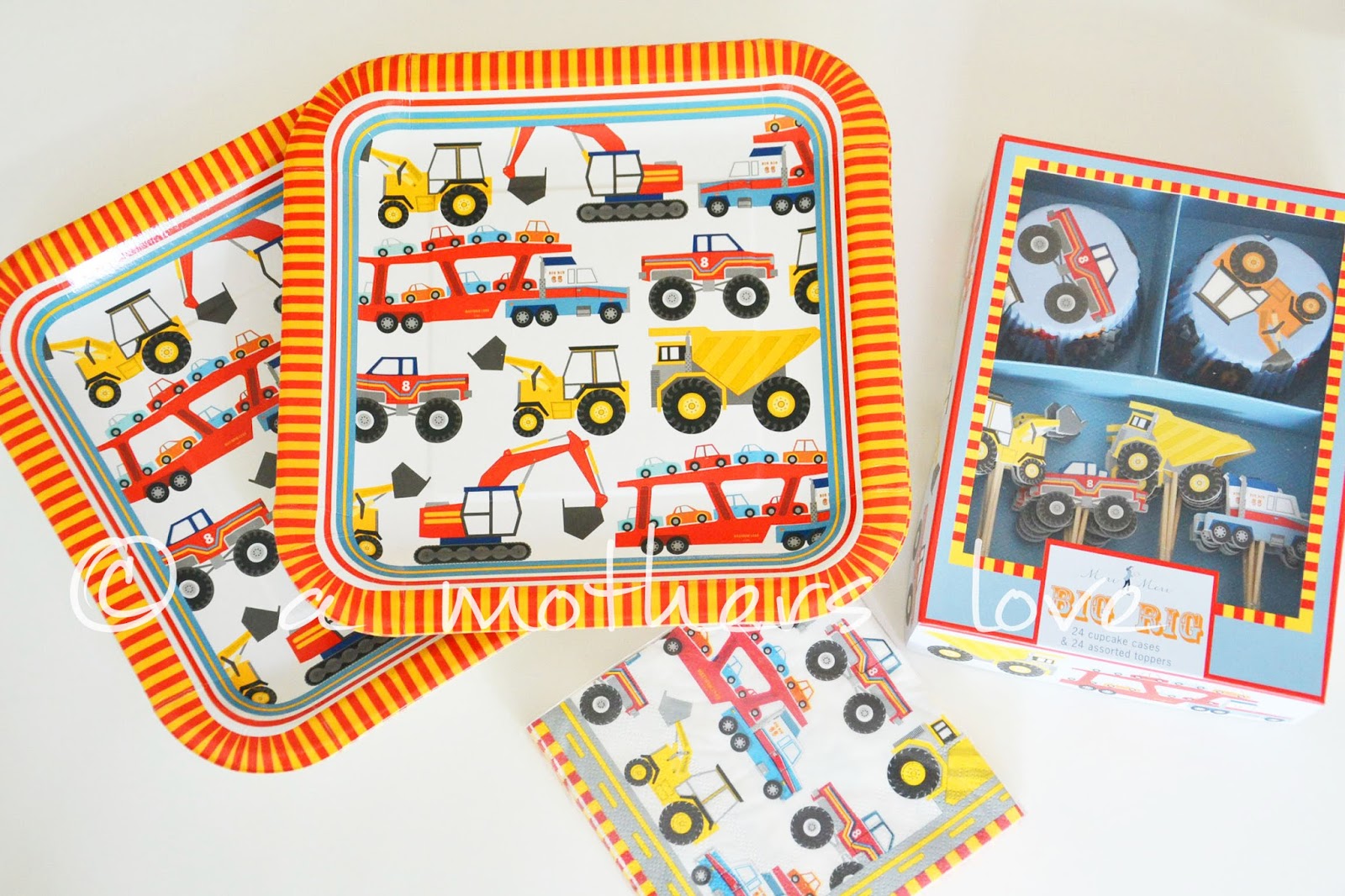 Hierfür habe ich ein paar tolle teile aus der Big Rig Serie gefunden. Die Einzelnen Teile findet ihr hier. Entschieden habe ich mich für Teller, Servietten, ein Cupcake Set, Trinkbecher, Eisbecher sowie zwei Girlanden. Da ich jedes Jahr die Geburtstagstorten selber mache, habe ich mich noch nicht für die Deko entschieden, was bei dem Thema irgendwie auch nicht leicht ist. Habt ihr Tipps? =)
