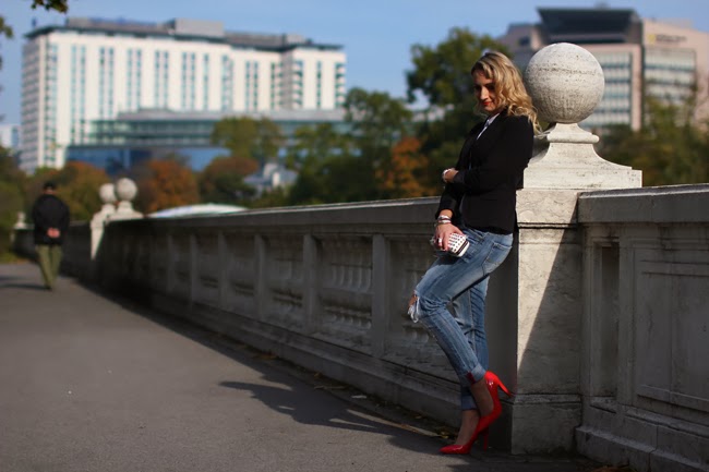jeans, shoes - Mango / blouse - H&M / blazer - Zara / clutch - Forever 21 / earrings - Dyrberg Kern / ring - Thomas Sabo / bracelets - LookbookStore, Swarovski, Thomas Sabo / sunglasses - H&M