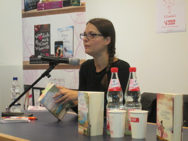 Ein besonderes Vergnügen war die Lesung mit Emily Bold, die von vorablesen.de organisiert wurde. Die Autorin las aus ihrem neuesten Buch "Der Duft von Pinienkernen" und erzählte einige lustige Anekdoten.