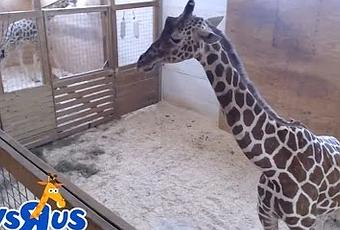 Samstagmorgen begann die Geburt: April ging in ihrem Gehege umher, zuerst waren die Beine des Kalbes sichtbar. Kurz vor 10 Uhr Ortszeit kam der Nachwuchs zur Welt, der Vater im Nachbargehege sah zu – wie 1,1 Millionen Menschen auf YouTube.