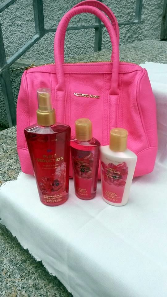 Natürlich war ich auch bei Victoria Secret, da gabs richtig tolle Sachen ob Unterwäsche oder Parfum/ Bodylotionen oder Duschgel.Ich habe mich für ein Set entschieden mit einer knall pinken Handtasche mit Bodyspray, Duschgel und Bodylotion.Das Set ist Pure Seduction Red plum & fressia.Kostete zusammen 28£