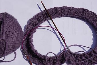 weiter ging es dann mit einer 3er Nadel und den verkürzten Reihen. Zum Glück hat Anett dazu geschrieben, wann verzopft und wann umgeschlagen wird - ich hätte es sonst wieder verpeilt und vergessen *lach*