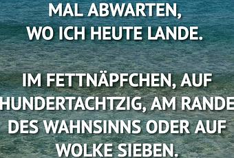 Auf Facebook teilen Vorige Folgende MAL ABWARTEN, WO ICH HEUTE LANDE. IM... Autor des Artikels : istdaslustig Zum Original-Artikel MAL ABWARTEN, WO ICH HEUTE LANDE. IM FETTNÄPFCHEN, AUF HUNDERTACHTZIG, AM RANDE DES WAHNSINNS ODER AUF WOLKE SIEBEN. Hier geht es zum Artikel Mehr Lustiges auf www.istdaslustig.de Auf Facebook teilen Vorige Folgende Das könnte Ihnen gefallen Mehr