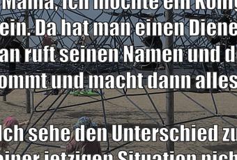 Auf Facebook teilen Vorige Folgende "Mama, ich möchte ein König sein. Da hat man... Autor des Artikels : istdaslustig Zum Original-Artikel "Mama, ich möchte ein König sein. Da hat man einen Diener. Man ruft seinen Namen und der kommt und macht dann alles." Ich sehe den Unterschied zu seiner jetzigen Situation nicht. Hier geht es zum Artikel Mehr Lustiges auf www.istdaslustig.de Auf Facebook teilen Vorige Folgende Das könnte Ihnen gefallen Mehr