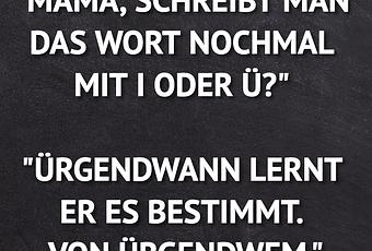 Auf Facebook teilen Vorige Folgende "MAMA, SCHREIBT MAN DAS WORT NOCHMAL MIT I ODER... Autor des Artikels : istdaslustig Zum Original-Artikel "MAMA, SCHREIBT MAN DAS WORT NOCHMAL MIT I ODER Ü?" "ÜRGENDWANN LERNT ER ES BESTIMMT. VON ÜRGENDWEM." Hier geht es zum Artikel Mehr Lustiges auf www.istdaslustig.de Auf Facebook teilen Vorige Folgende Das könnte Ihnen gefallen Mehr