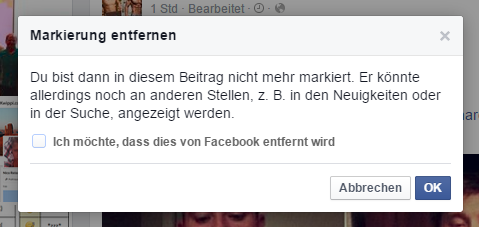 Schritt 2:Einen Haken in das Feld "Ich möchte, dass dies von Facebook entfernt wird!" und dann auf OK klicken