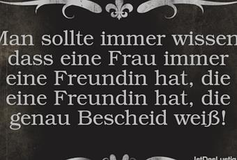 Auf Facebook teilen Vorige Folgende Man sollte immer wissen, dass eine Frau immer... Autor des Artikels : istdaslustig Zum Original-Artikel Man sollte immer wissen, dass eine Frau immer eine Freundin hat, die eine Freundin hat, die genau Bescheid weiß! Hier geht es zum Artikel Mehr Lustiges auf www.istdaslustig.de Auf Facebook teilen Vorige Folgende Das könnte Ihnen gefallen Mehr