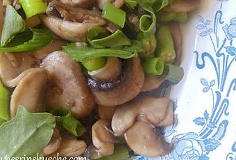 500 g Champignons3 EL Olivenöl2-3 Knoblauchzehen1 Kaffeelf. Meersalz1 TL Pfeffer aus der Mühle2-3 Stücke Spitzpaprika2-3 Stangen Frühlingszwiebelneine Hand voll Rucola oder Petersilie, Dill usw.Champignons waschen, putzen, in dünne Scheiben schneiden. Knoblauchzehen schälen, zerdrücken. In einer Pfanne bei mittlerer Hitze Olivenöl erhitzen. Zerdrückte Knoblauch darin kurz rösten, bis sie ihre Geruch ausgibt. Champignons zugeben, unter ständigem Rühren 6-7 Minuten an dünsten, bis sie weich werden. Salzen und pfeffern. An gedünsteten Champignon in die Serviereschale geben. Die restlichen Gemüse klein hacken, zugeben, rühren und servieren.