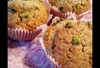 Jetzt den Teig gleichmäßig auf die Muffinförmchen verteilen und mit den gehackten Pistazien bestreuen. Für besseren Stand und eine schönere Form kann man die Förmchen in ein Muffinblech stellen.