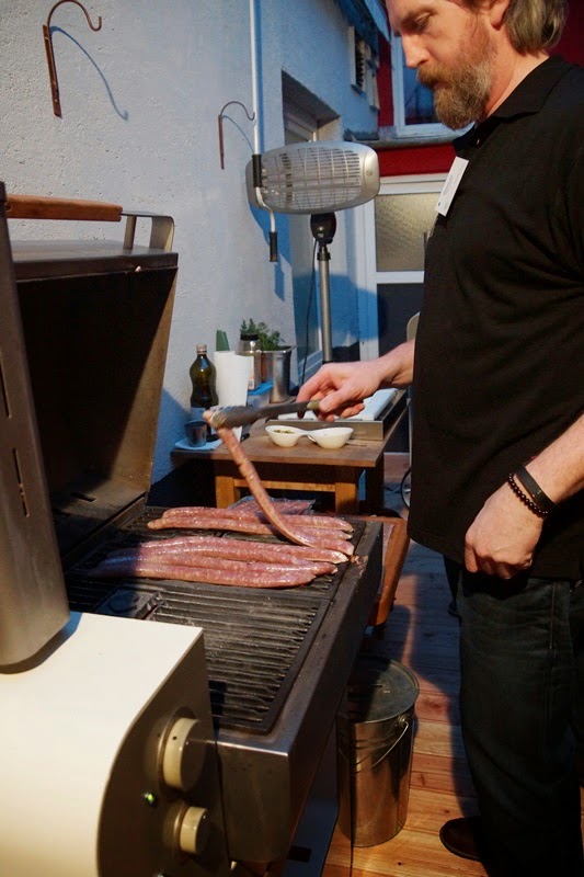 Was selbstverständlich bei so vielen Foodies unter einem Dach ist: es wird während der gesamten Zeit natürlich immer irgendwo gekocht, gebacken, gerillt oder gegart... Glücklicherweise geht ein Bar-Camp nur über zwei Tage, denn ansonsten könnte man mich als Michelin-Männchen hier durchs Haus kullern. Ich glaube, ich habe noch niemals so viel gegessen, genascht und probiert. Es gab großartige Sachen, wie Matcha-Brownies, Sous-Vide gegartes Fleisch, sensationelle Wildschwein-Bratwurst, hammermäßig leckeren gesmoketen Lachs, vegetarisches Eis, weltbeste Burger, geniale Currywurst mit Süßkartoffel-Pommes, diverse Pasta, Reisgerichte, Lakridshäppchen, Miso-Gerichte, Mug-Cakes, selbstgebackenes Brot, Salate, ach' es fehlte einfach an Nichts!!! Sogar das abendliche "Alkoholproblem" war Dank Marcus unkomplizierter Hilfe sehr schnell behoben :) Ich würde sagen, "Schlaraffenland" umschreibt das Ganze wohl am Besten!