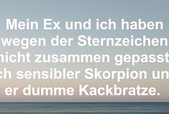 Auf Facebook teilen Vorige Folgende Mein Ex und ich haben wegen der Sternzeichen... Autor des Artikels : istdaslustig Zum Original-Artikel Mein Ex und ich haben wegen der Sternzeichen nicht zusammen gepasst. Ich sensibler Skorpion und er dumme Kackbratze. Hier geht es zum Artikel Mehr Lustiges auf www.istdaslustig.de Auf Facebook teilen Vorige Folgende Das könnte Ihnen gefallen Mehr