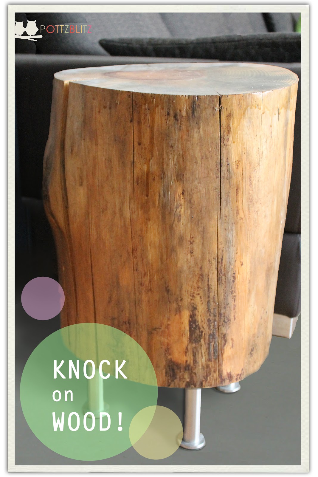 Alles begann mit einer kleinen Liebesgeschichte. An einer Verkaufsstelle, wo man eigentlich ausschließlich Kaminholz erstehen kann, verliebten wir uns in einen kleinen Baumstumpf. Bereits leicht angemodert stand er verlassen in der hintersten Ecke des besagten Ladens. Natürlich erkannten wir sofort seine Schönheit und schauten unter seine bröckelige Fassade! ^^ Und wenn sie nicht gestorben sind dann leben sie noch heute... und so weiter und so weiter. Jedenfalls nahmen wir den Baumstamm für nur 5,00€ mit nach Hause ohne einen Plan, was wir damit anstellen sollten. So stand er circa ein Jahr in unserer Bude und diente mehr oder weniger als Abstelltisch. Und, ob ihr es glaubt oder nicht, als solch ein Beistelltisch machte sich der kleine Baumgenosse ausgesprochen gut. Somit nahmen wir uns vor, den alten Morast zu entfernen und einen wunderschönen Tisch aus ihm zu kreieren. Wir geben zu, hier wurde das Rad nicht neu erfunden, die Idee für solch einen Tisch haben wir auf der Seite theartofdoingstuff eingeholt. Nichtsdestotrotz wollen wir euch hier und heute das Makeover unseres alten/neuen Mitbewohners präsentieren. Alles was ihr hierfür braucht ist einen Baumstamm, ein Schleifgerät, Schleifpapier, transparente Holzlasur, Pinsel und drei schicke Edelstahlfüße (gekauft in der IKEA Küchenabteilung 16,00 €).