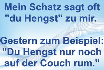 Auf Facebook teilen Vorige Folgende Mein Schatz sagt oft "du Hengst" zu mir.... Autor des Artikels : istdaslustig Zum Original-Artikel Mein Schatz sagt oft "du Hengst" zu mir. Gestern zum Beispiel: "Du Hengst nur noch auf der Couch rum." Hier geht es zum Artikel Mehr Lustiges auf www.istdaslustig.de Auf Facebook teilen Vorige Folgende Das könnte Ihnen gefallen Mehr