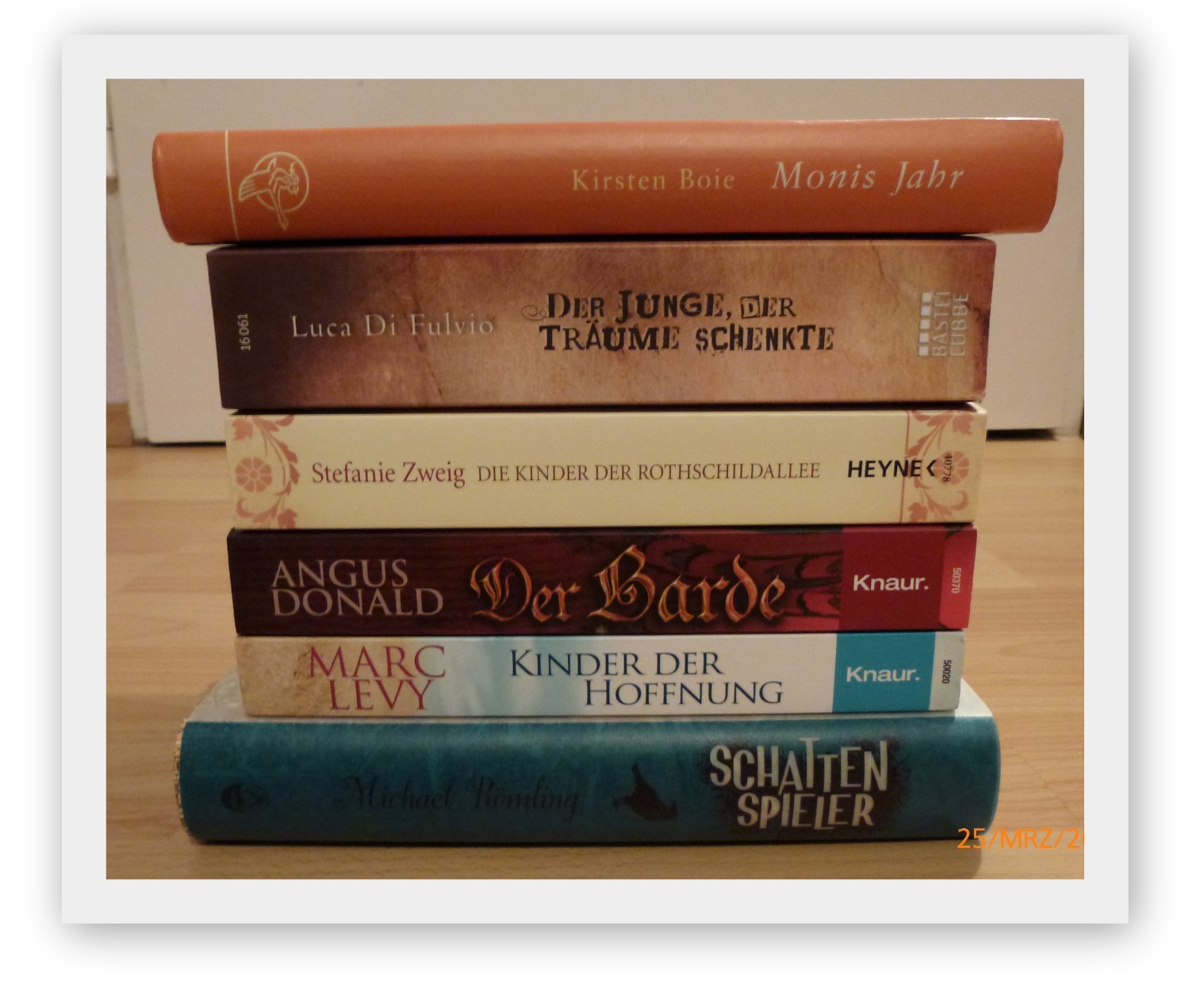 Ich habe meinen SuB in Stapel verschiedene Genre eingeteilt :) So hab ich nämlich alle Bücher auf die Kamera gekriegt :D