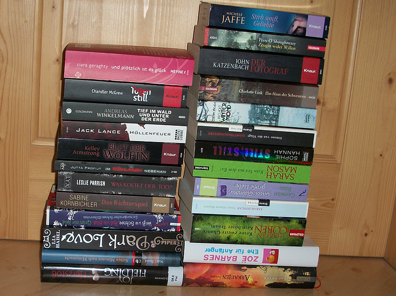 Und so klein ist mein (schief fotografierter) SuB am heutigen Tage -es sind "nur" 26 Bücher, obwohl es nach mehr aussieht...