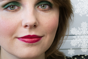Auf Magimania kann man gerade ein hübsches Beauty-Päckchen gewinnen, indem man einen Festtags-Look nachschminkt. Ich entschied mich für diesen hier, den ich ein wenig abgewandelt habe. Durch das sattere Grün aus der Sleek Ultra Mattes V2 Palette sieht meiner so farbenfroh aus. Im Nachhinhein würde ich einen Nude-Lippenstift dazu wählen, weil’s einfach natürlicher aussieht und so der Fokus mehr auf den Augen liegt und ich mich nicht zu verkleidet fühle. Und was ich auch nicht nochmal tun würde: den NYX Jumbo Pencil in Rocky Mountain Green als Lidschatten-Base verwenden. Dadurch kriecht alles in die Lidfalten. zudem gefällt mir die Velvet Foundation von Catrice absolut nicht. Sie betont Fältchen und trockene Stellen viel zu sehr. Hier habe ich sie mit der Rival de Loop Natural Lift Foundation gemischt, sonst hätte das Ergebnis ein wenig schlimmer ausgeschaut. Am Ende des Abends hatte ich die Foundation überall: in den Poren, in den Fältchen, hinter den Nasenflügeln… wirklich überall, nur nicht da wo sie sein sollte. Auch bei dem Lippenstift bin ich zwiegespalten. Ich mag den Rihanna-Lipstick von Mac gerne, aber auch er kriecht ohne Lipliner extrem in umliegende Fältchen und franst so aus. Auf die Schnelle hatte ich nur den Lipliner von Flormar in einem beerigen Rot gefunden, weshalb der Lippenstift bläulicher wirkt als er in Wirklichkeit ist.