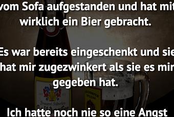 Meine Frau ist heute das erste Mal vom Sofa aufgestanden und hat mit wirklich ein Bier gebracht.