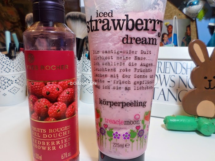 Unter der Dusche habe ich auch einige Favoriten ♥ Das Yves Rocher Red Berries Duschgel hat einen ganz tollen Duft und passt gut in den Frühling :)Das Treaclemoon Peeling Iced Strawberry Dream ist vom Duft und Design auch toll für die Jahreszeit :) An die sanfte Peelingwirkung habe ich mich schon gewöhnt :)