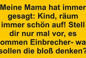 Auf Facebook teilen Vorige Folgende Meine Mama hat immer gesagt: Kind, räum immer... Autor des Artikels : istdaslustig Zum Original-Artikel Meine Mama hat immer gesagt: Kind, räum immer schön auf! Stell dir nur mal vor, es kommen Einbrecher- was sollen die bloß denken? Hier geht es zum Artikel Mehr Lustiges auf www.istdaslustig.de Auf Facebook teilen Vorige Folgende Das könnte Ihnen gefallen Mehr