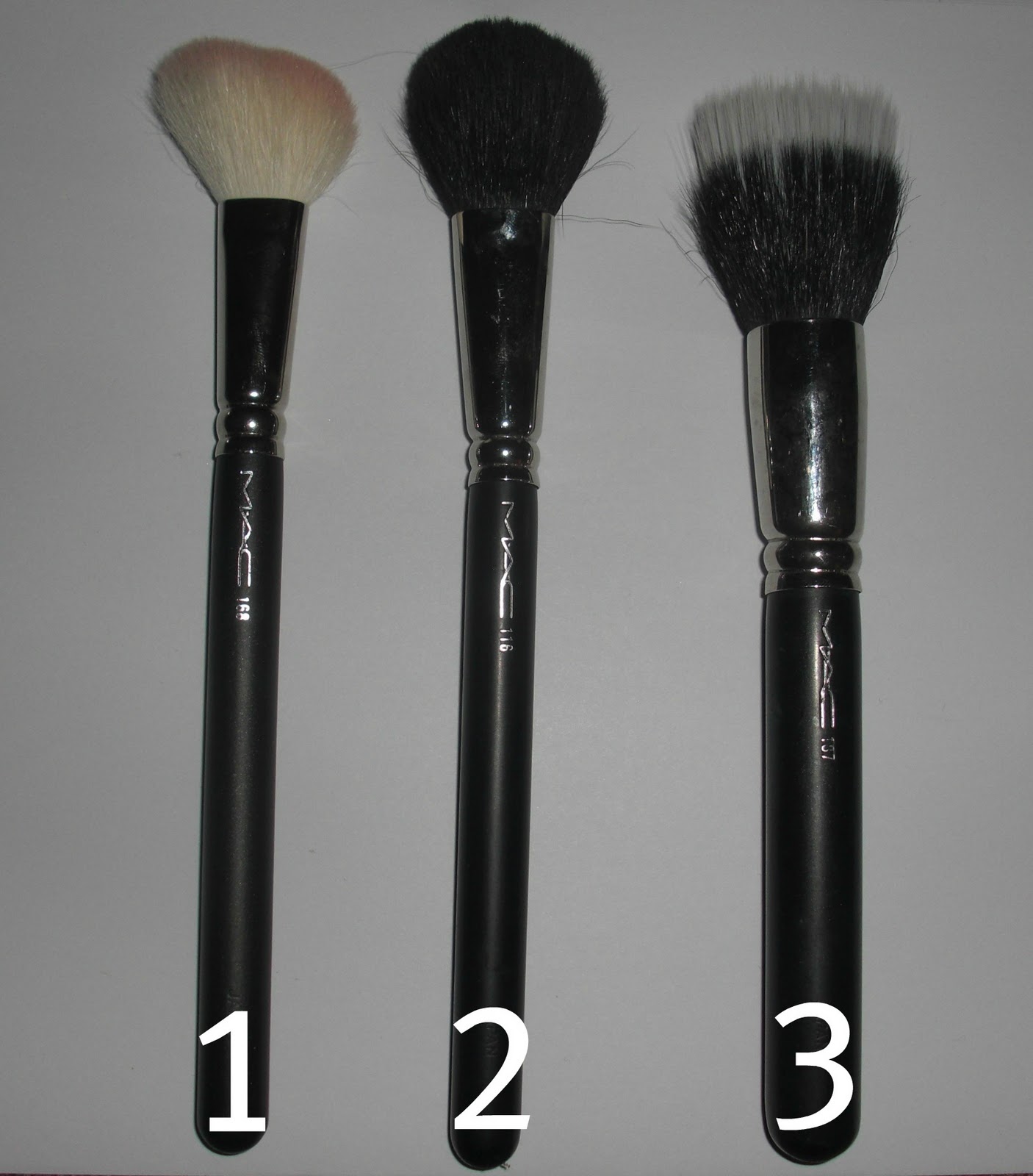 1. MAC 168: Lange habe ich mich gegen Ihn geweigert weil ich nicht wirklich mit ihm zurecht kam. Letztendlich aber doch gekauft und für brauchbar befunden ;)2. MAC 116: Mein Allrounder. Ich nehme in für Puderrouge, Cremerouge, Contouringpowder, Bronzer etc... Ganz grosse Liebe.3. MAC 187: Der Stinktierpinsel oder auch Stippling Brush. Perfekt für cremige Konsistenzen. Egal ob bei Rouge oder Bronzer.