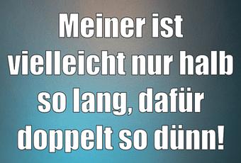 Auf Facebook teilen Vorige Folgende Meiner ist vielleicht nur halb so lang, dafür... Autor des Artikels : istdaslustig Zum Original-Artikel Meiner ist vielleicht nur halb so lang, dafür doppelt so dünn! Hier geht es zum Artikel Mehr Lustiges auf www.istdaslustig.de Auf Facebook teilen Vorige Folgende Das könnte Ihnen gefallen Mehr