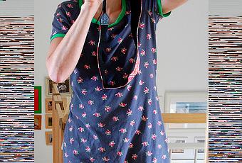 Endlich hab ich mal nen "richtigen" Stoff angeschnitten und kein Probeteil produziert. Ein Shirtkleid über die Jeans sollte es werden. Vor dem Urlaub noch schnell genäht, denn es lag schon eine Weile zugeschnitten rum. Heute vormittag meinte die Freundin, dass sie das Kleid für "über die Jeans" noch so 5-8 cm kürzen würde. Ich überlege noch!