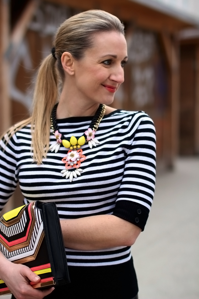Bei der Farbkombination schwarz-weiß denken wohl die meisten an klassische & schlichte Looks. Wenn man aber unterschiedliche Muster und Materialen in den beiden Nichtfarben mixt, kann das Ergebnis alles andere als vorhersehbar oder konservativ sein. Beim heutigen Look meiner "black & white collection" trage ich meinen neuen Lederrock in Midilänge, weiße high heels, ein Streifen-Shirt und Schmuck & Clutch im Ethnolook. Fertig ist ein elegant-femininer, aber auch cooler Frühlingslook, wie ich finde :-) ... - Teilt ihr meine Meinung?