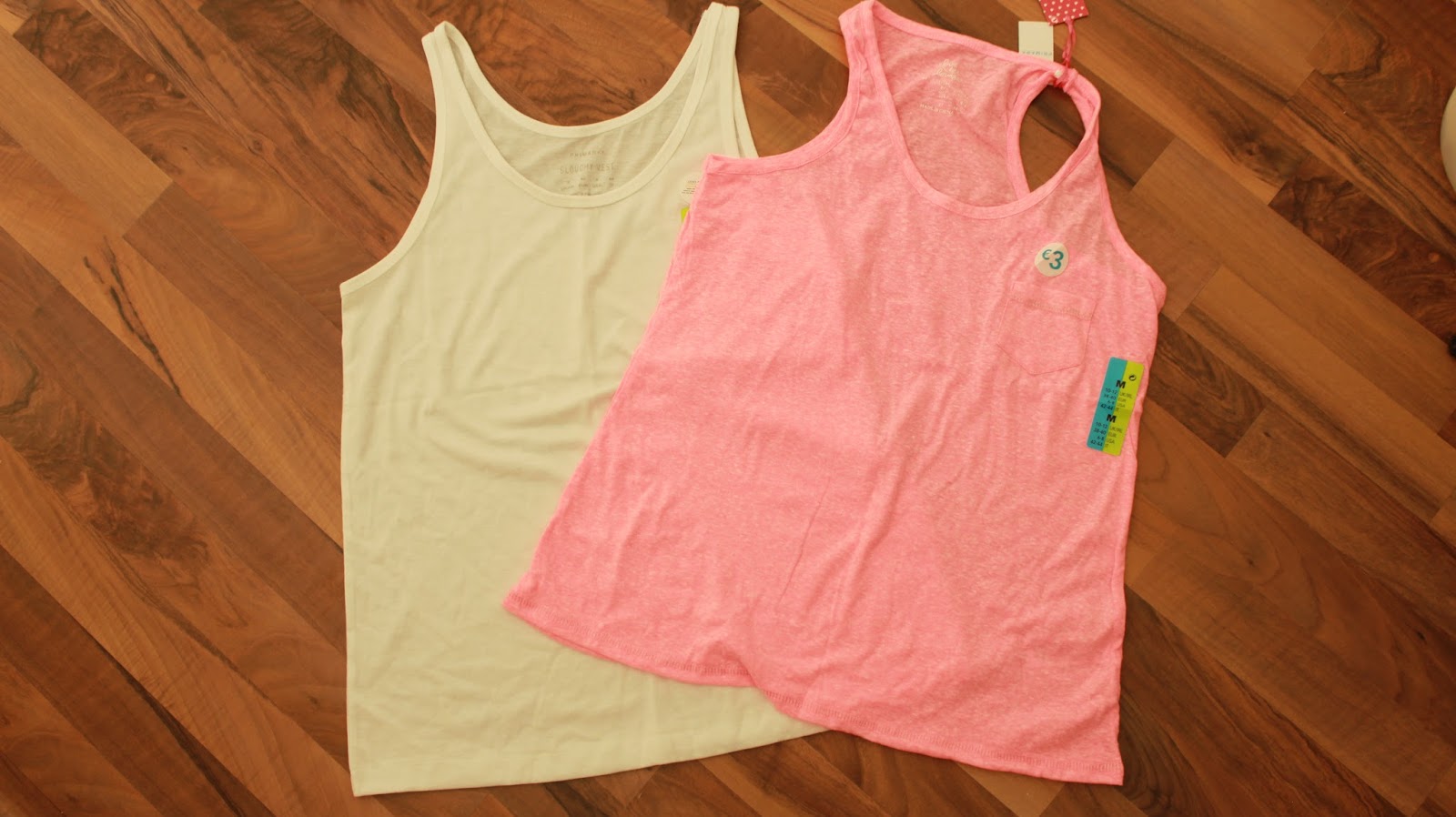 Das weiße Top hat glaube ich 2,00 Euro gekostet und das rote hat 3,00 Euro gekostet.Ich finde die Tops immer sehr praktisch zum Unterziehen bei der Arbeit oder auch so.