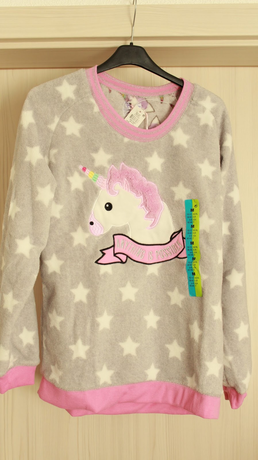 Dieses Nachthemd hat 7,00 Euro gekostet.Ich fand es einfach süß, mit dem Einhorn.
