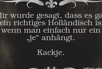 Auf Facebook teilen Vorige Folgende Mir wurde gesagt, dass es gar kein richtiges... Autor des Artikels : istdaslustig Zum Original-Artikel Mir wurde gesagt, dass es gar kein richtiges Holländisch ist, wenn man einfach nur ein „je“ anhängt. Kackje. Hier geht es zum Artikel Mehr Lustiges auf www.istdaslustig.de Auf Facebook teilen Vorige Folgende Das könnte Ihnen gefallen Mehr