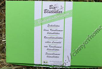 Neben den Rosenblütenblätter aus Marokko sind noch Kornblumenblütenblatter aus Albanien, Erikablüten und Sonnenblumenblütenblätter aus Kroatien, Kornblumenblütenblätter aus Polen und Lavendelblüten aus Italien enthalten.Damit man nicht erst mal googlen muss, ist auch gleich ein Heftchen enthalten in dem Rezepte und Ideen stehen. Neben Tees stehen Risottos, Puddings, Gelees, Saucen und einiges mehr drin. Hört sich alles total interessant an und einiges habe ich schon ausprobiert.