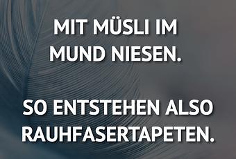 Auf Facebook teilen Vorige Folgende MIT MÜSLI IM MUND NIESEN. SO ENTSTEHEN ALSO... Autor des Artikels : istdaslustig Zum Original-Artikel MIT MÜSLI IM MUND NIESEN. SO ENTSTEHEN ALSO RAUHFASERTAPETEN. Hier geht es zum Artikel Mehr Lustiges auf www.istdaslustig.de Auf Facebook teilen Vorige Folgende Das könnte Ihnen gefallen Mehr
